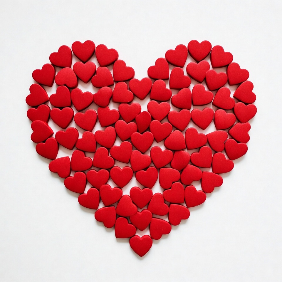 Red hearts forming heart shape