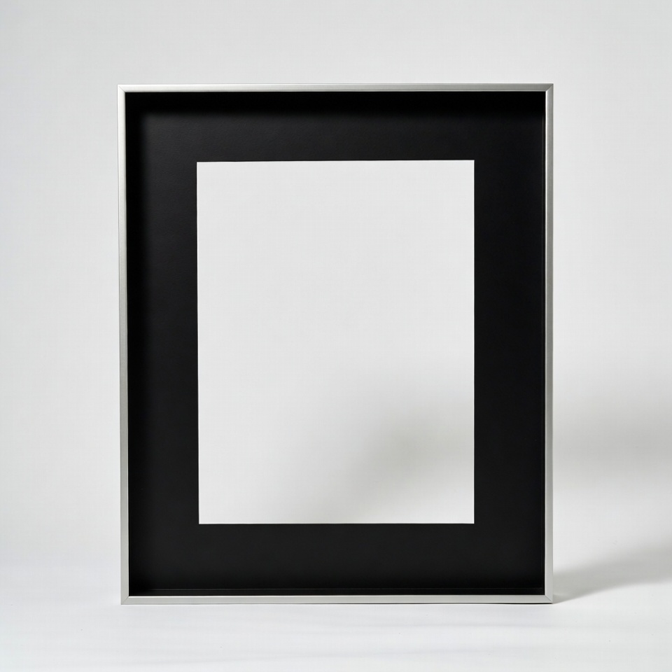 art frame, black mat, blank frame, empty frame, empty picture frame, frame, isolated, matboard, modern frame, photo frame, picture mat, poster frame, silver frame, white background, picture frame