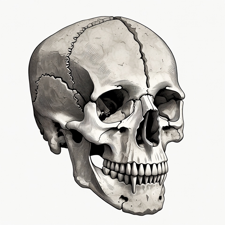 Detailed Human Skull Illustration