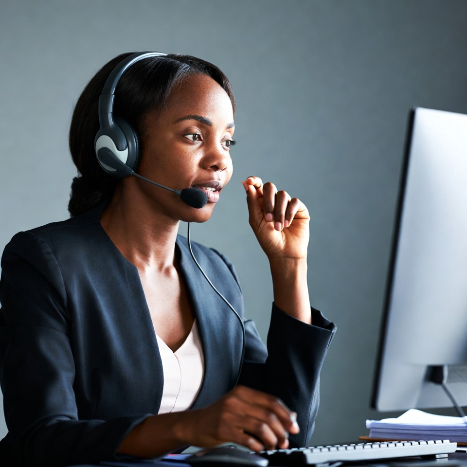 African-American woman on headset call