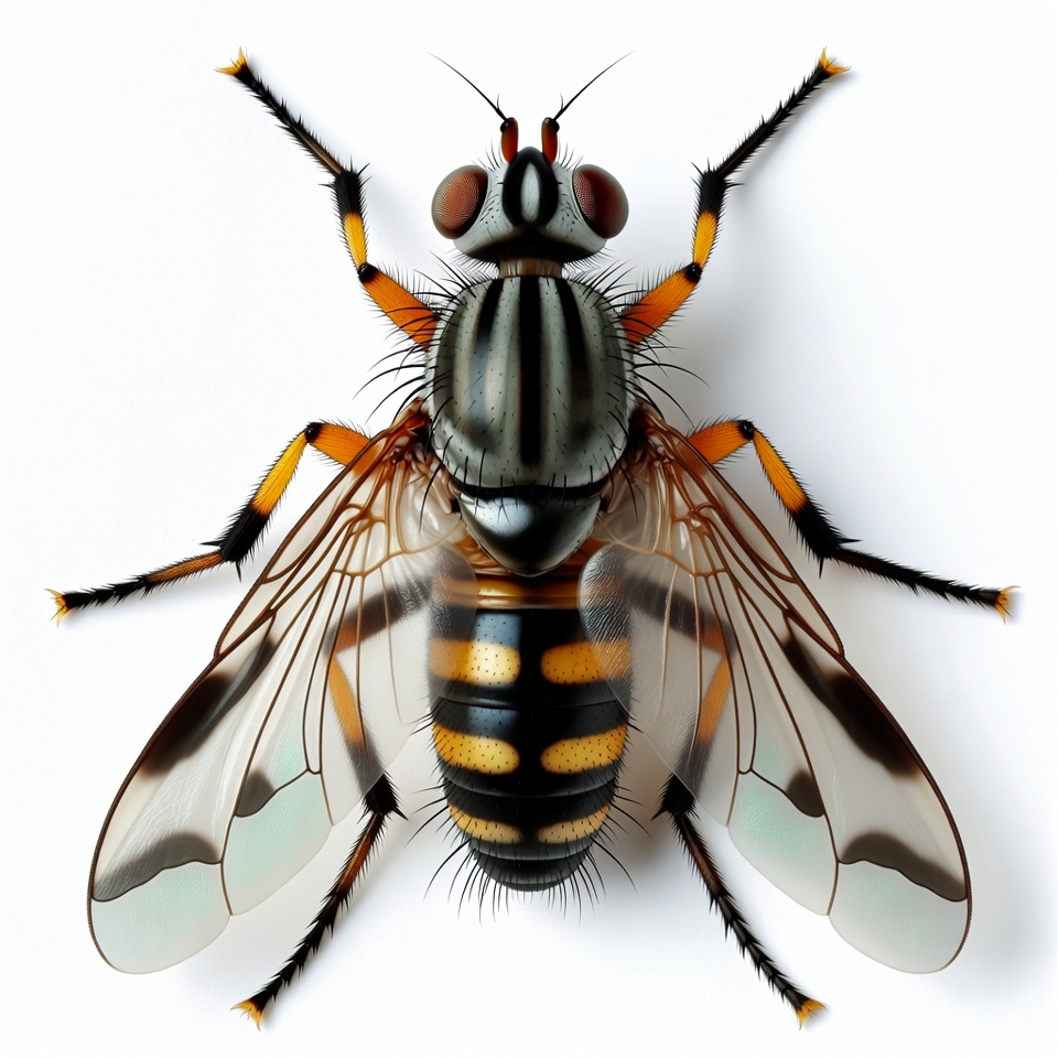 Orange Striped Fly on White Background
