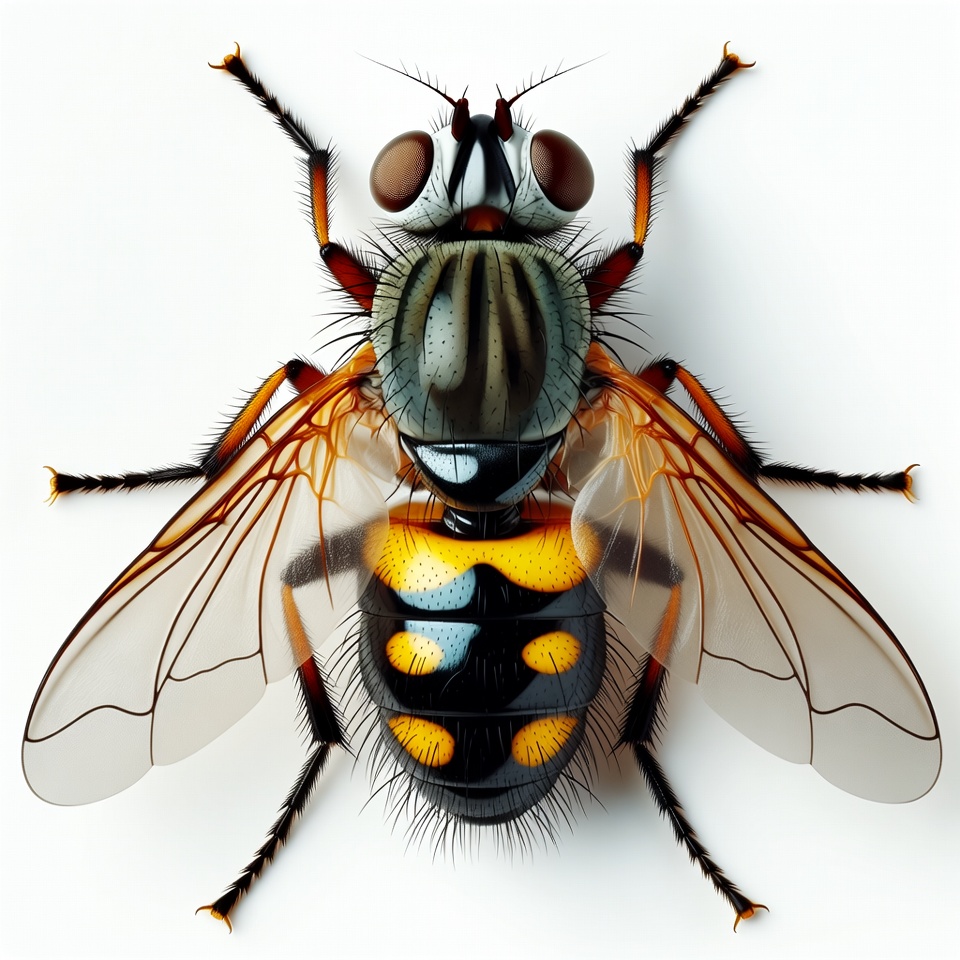 3D render, arthropod, bug, closeup, compound eyes, detailed, fly, insect, isolated, macro, nature, orange legs, translucent wings, white background, wildlife, yellow black stripes, hoverfly