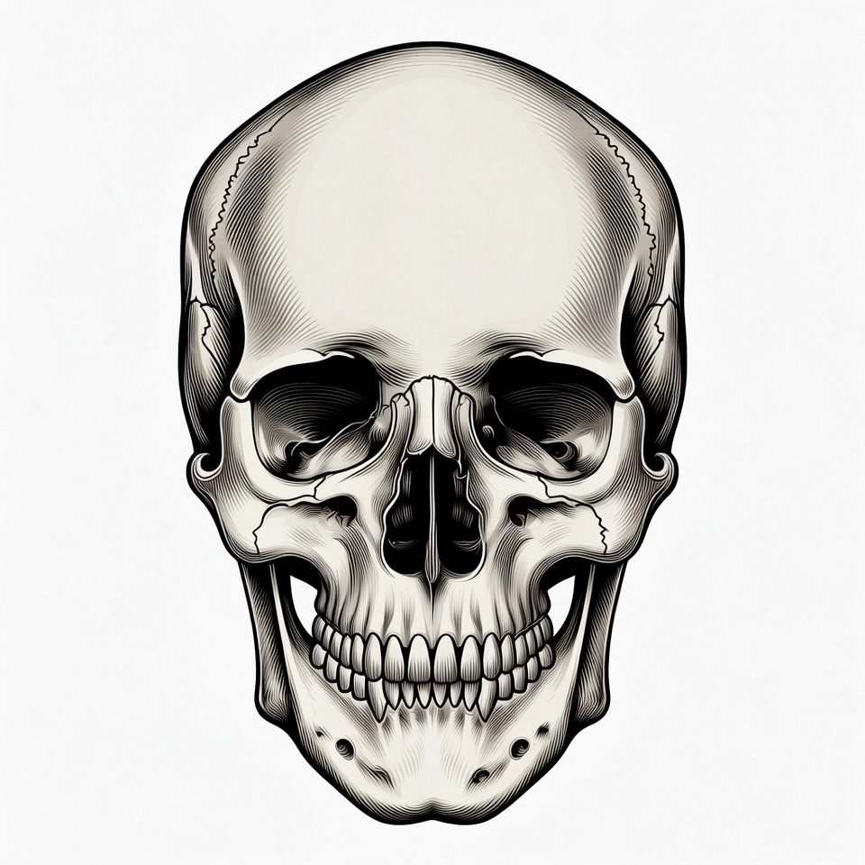Detailed Human Skull Illustration