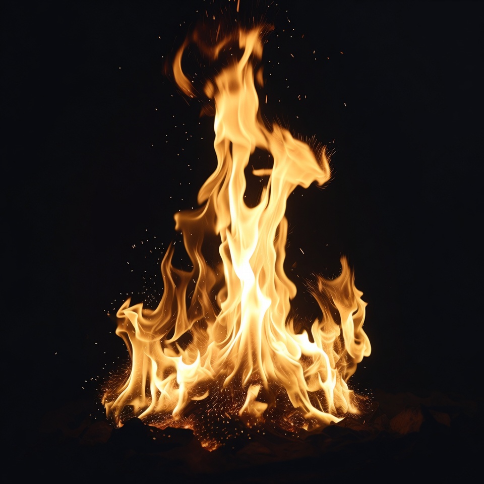 black background, blaze, bonfire, burning, campfire, combustion, embers, fiery, fire glow, flame pattern, flames, glow, heat, inferno, isolated, orange flames, sparks, warm light, yellow fire, fire