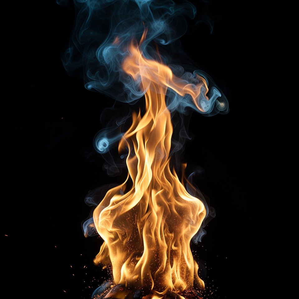 black background, blue flames, burning, combustion, dark background, fiery smoke, flame shapes, flames, glowing fire, heat, inferno, isolated, orange fire, smoke, smoke trails, sparks, fire