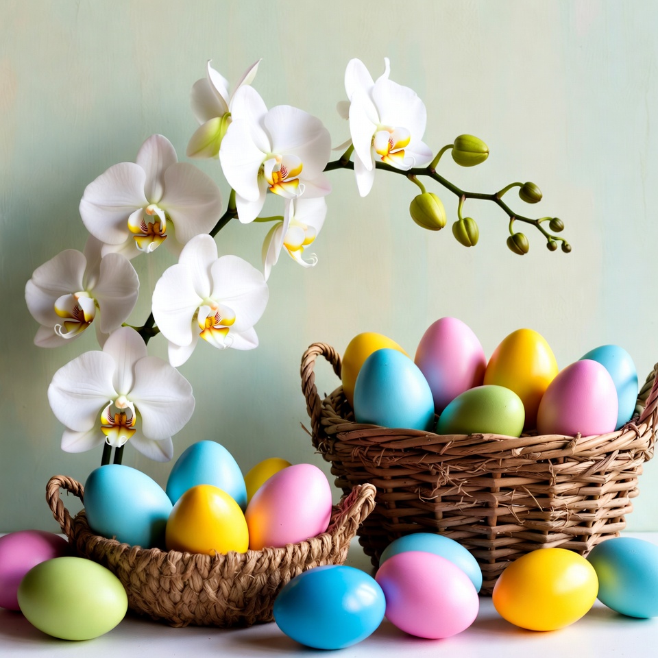 White Orchids and Colorful Easter Eggs