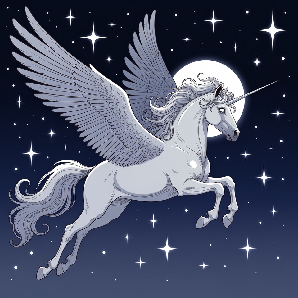 Pegasus Unicorn Flying in Starry Night