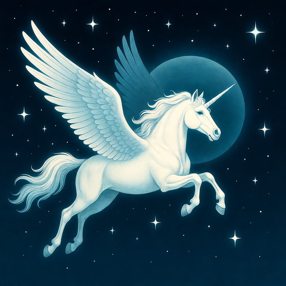 clipart, fantasy animal, flying unicorn, full moon, horse wings, illustration, isolated background, magical unicorn, night sky, pegasus unicorn, starry sky, stars, unicorn illustration, white unicorn, white wings, winged unicorn