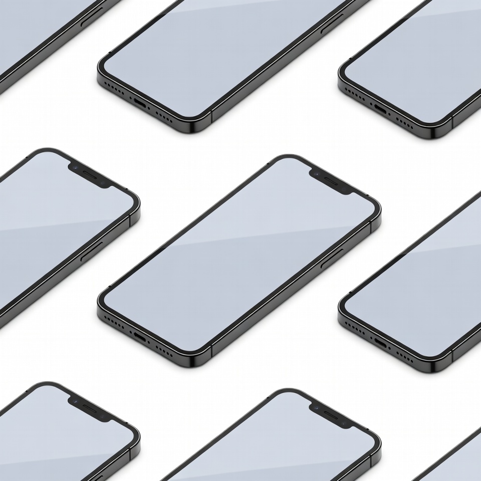 3D render, Apple iPhone, angled phones, black phone, blank screen, device mockup, digital device, iPhone 14, iPhone 15, isolated background, mobile phone, mockup, multiple phones, phone display, product mockup, screen mockup, smartphone, tech gadget, white background, iPhone