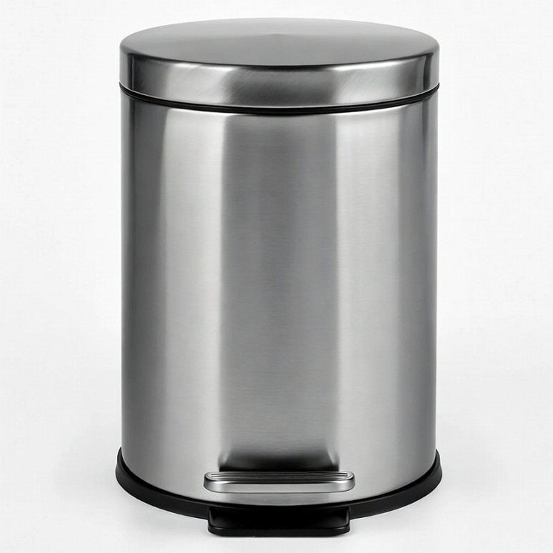 bathroom bin, cylindrical, garbage can, household, isolated background, kitchen bin, metal bin, pedal bin, recycling bin, shiny, silver, stainless steel, step trash, waste bin, waste container, trash can