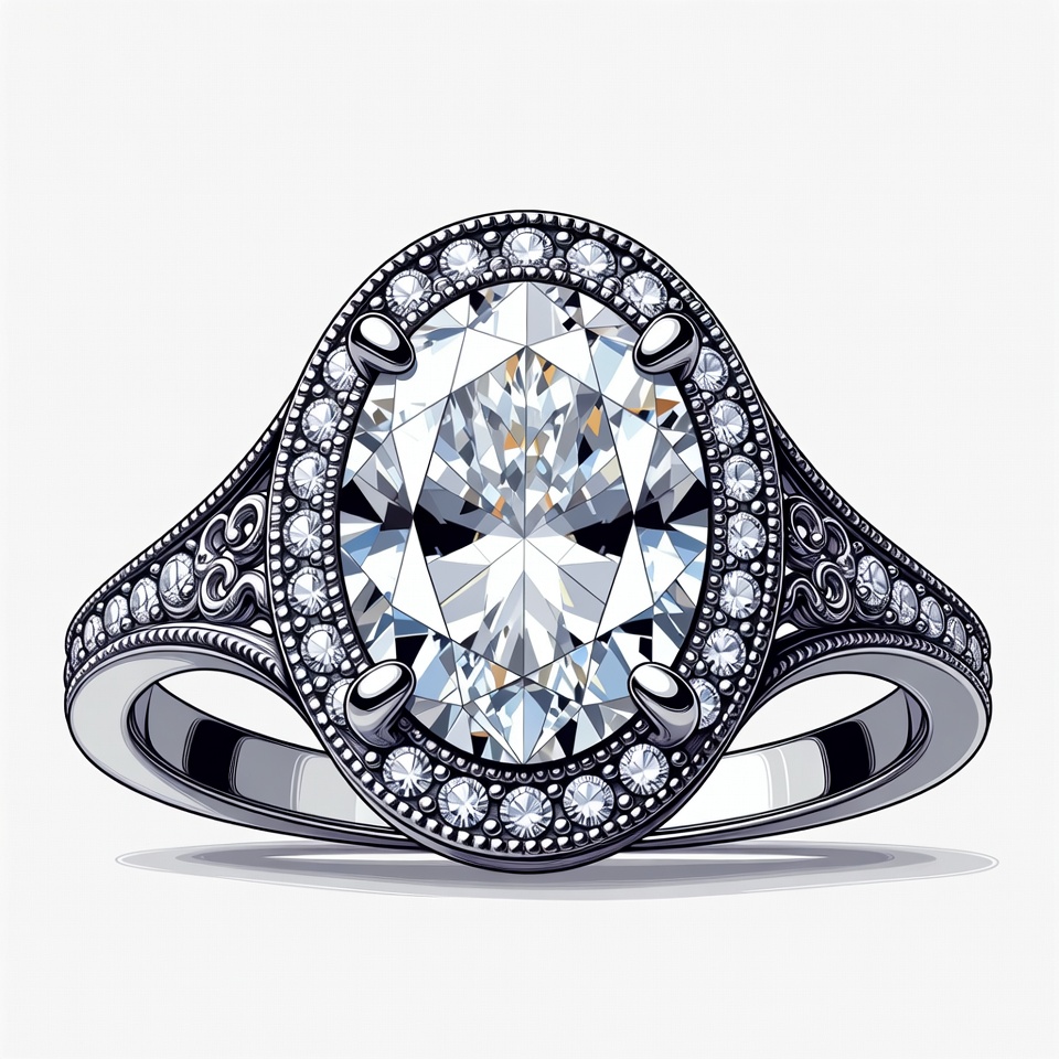 clipart, diamond jewelry, diamond ring, filigree design, fine jewelry, gemstone, halo ring, illustration, isolated background, jewelry, luxury jewelry, ornate band, oval diamond, silver ring, solitaire ring, vintage ring, wedding ring, engagement ring