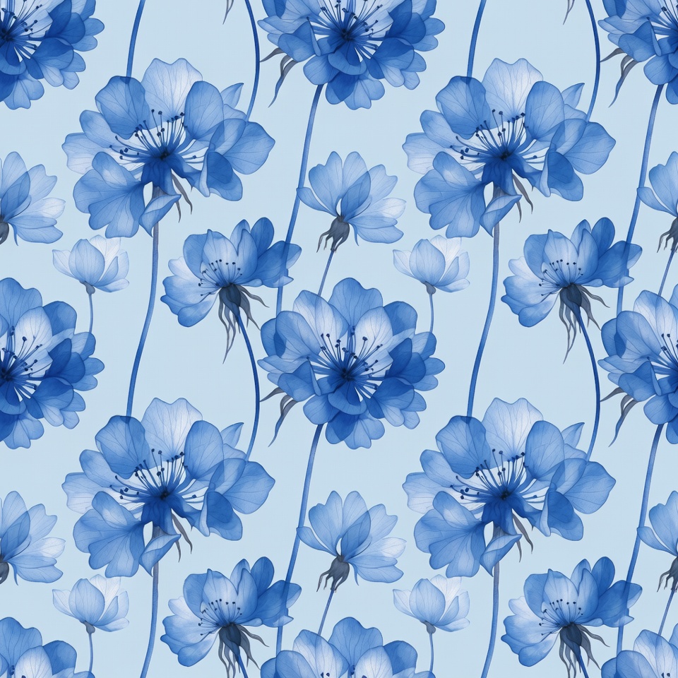 abstract floral, blooming flowers, blue hydrangea, clipart, decorative pattern, digital art, floral pattern, flower bouquet pattern, flower stems, hydrangea, illustration, light blue background, nature illustration, repeating design, seamless pattern, soft blue, translucent petals, vector flowers, watercolor, blue flowers
