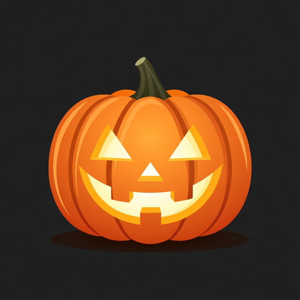Halloween, autumn, black background, carved pumpkin, clipart, festive, glowing eyes, green stem, holiday, illustration, isolated background, lantern, orange pumpkin, pumpkin, smiling face, spooky, vector art, jack-o-lantern
