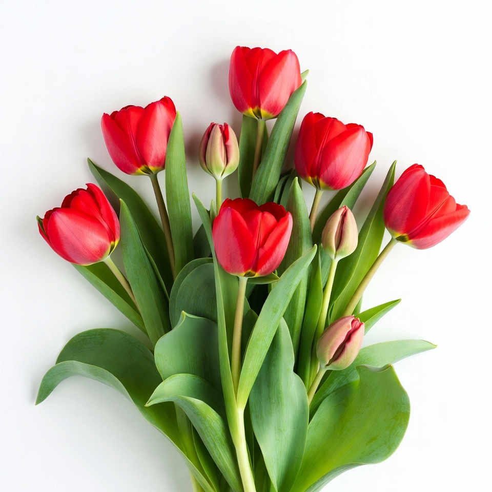 Red Tulips Bouquet on White Background