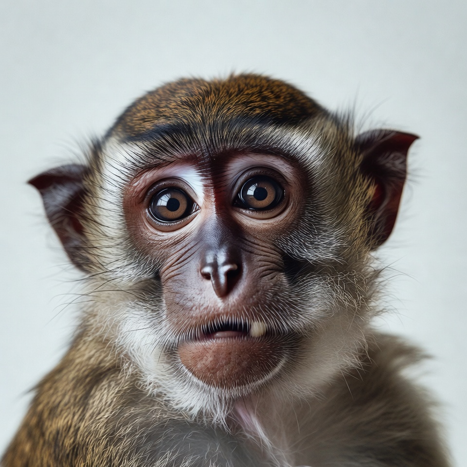 animal, big eyes, brown fur, closeup, cute monkey, funny face, headshot, isolated background, long-tailed macaque, macaque, mammal, mouth open, portrait, primate, staring, teeth, whiskers, white face, wildlife, monkey