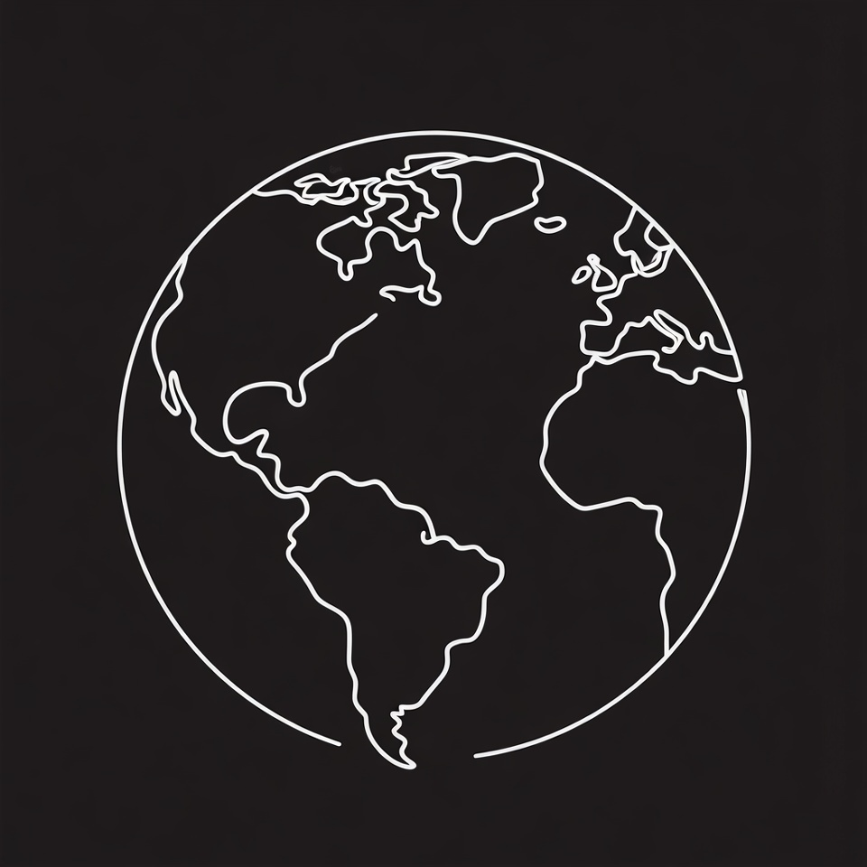 black background, clipart, continents, geography, globe, illustration, isolated, line art, minimalist, outline, planet, vector, white lines, world map, earth