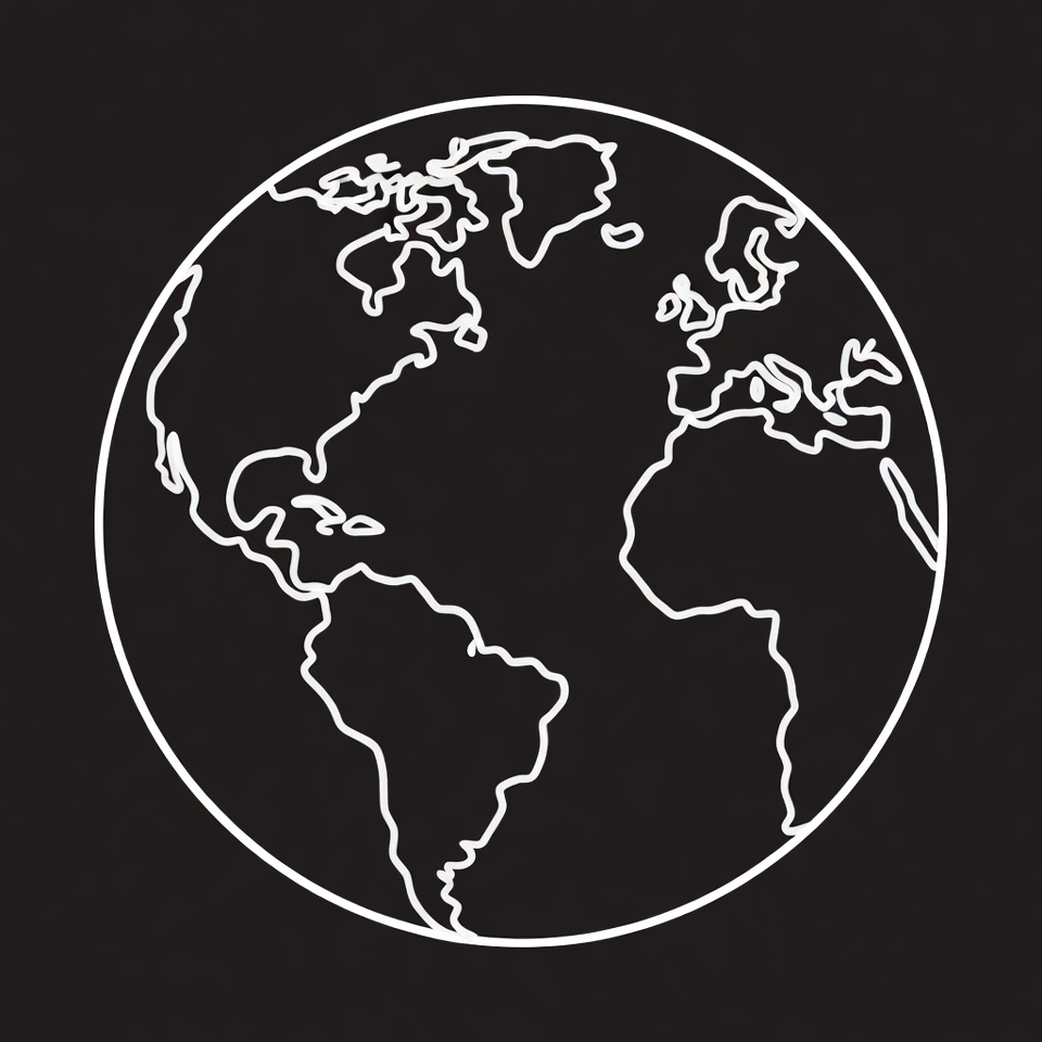 Africa, Asia, Australia, Europe, North America, South America, black background, clipart, continents, drawing, globe, illustration, isolated background, line art, minimalist, outline, planet, vector, world map, Earth