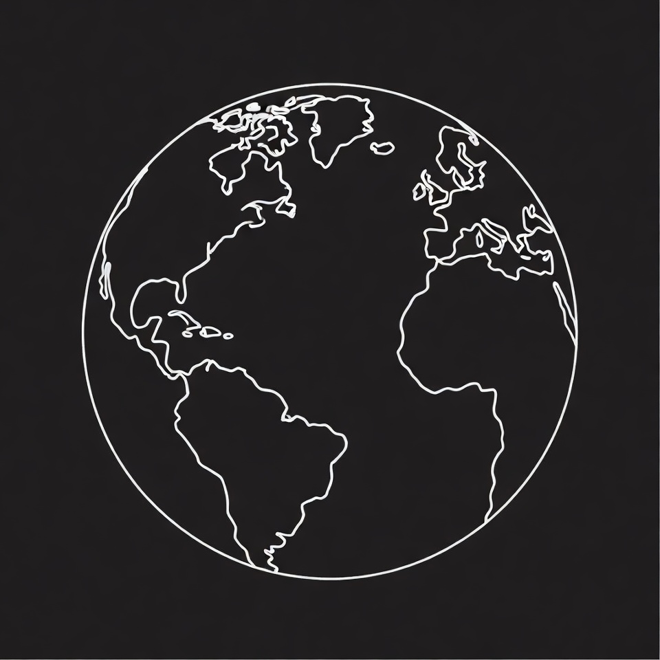 Earth, black white, continents, geography, global, globe, illustration, isolated background, line art, map outline, outline, planet, simple drawing, vector, world map