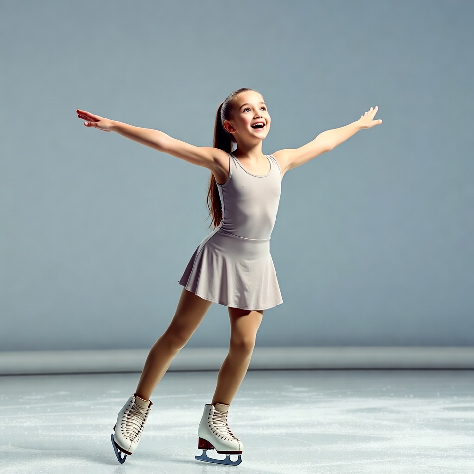 Young girl ice skating joyfully