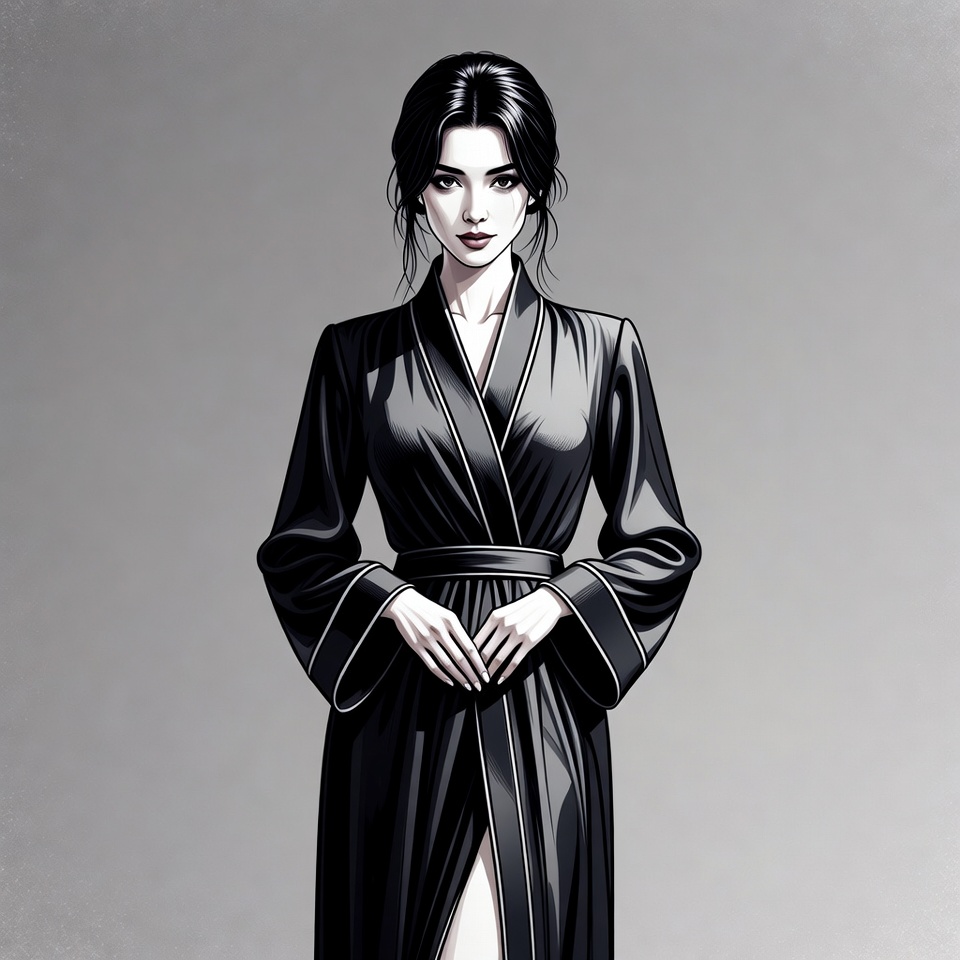 Woman in black silk robe
