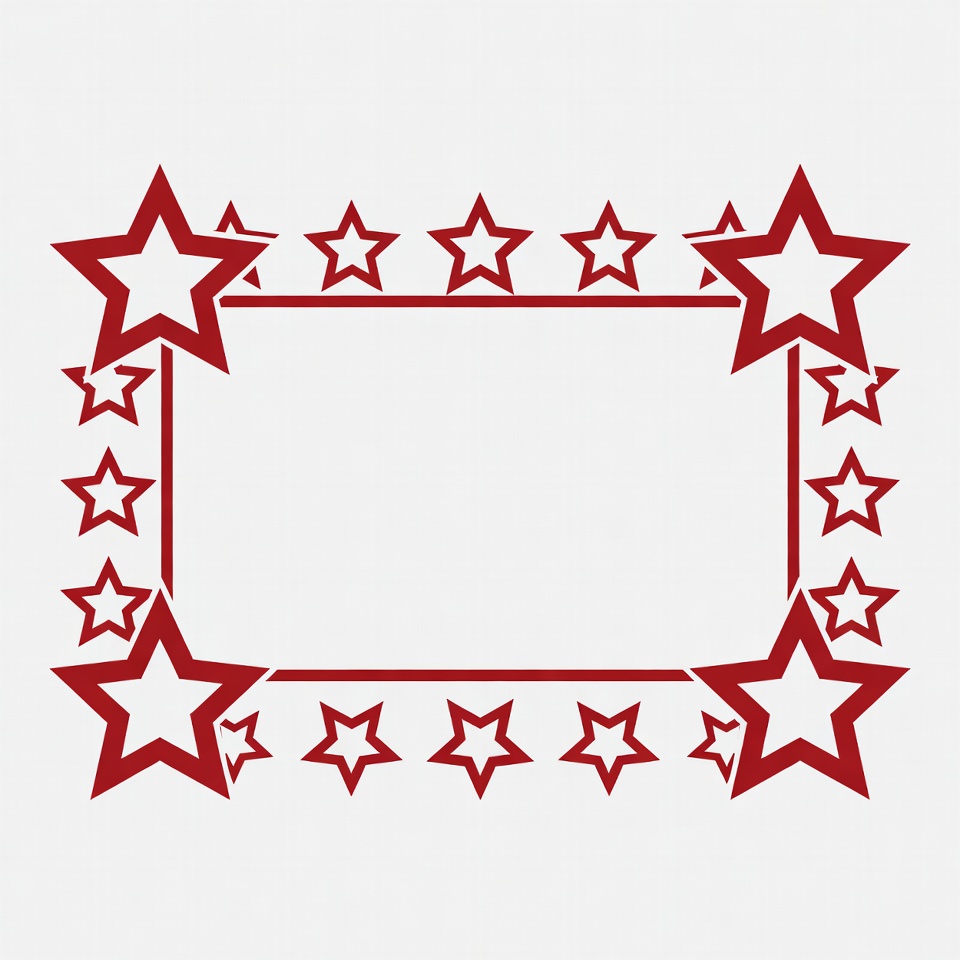 A rectangular frame with a white center is outlined by a thick red border. Numerous red five-pointed stars decorate the corners and sides of the frame. The design is simple and isolated on a white background.