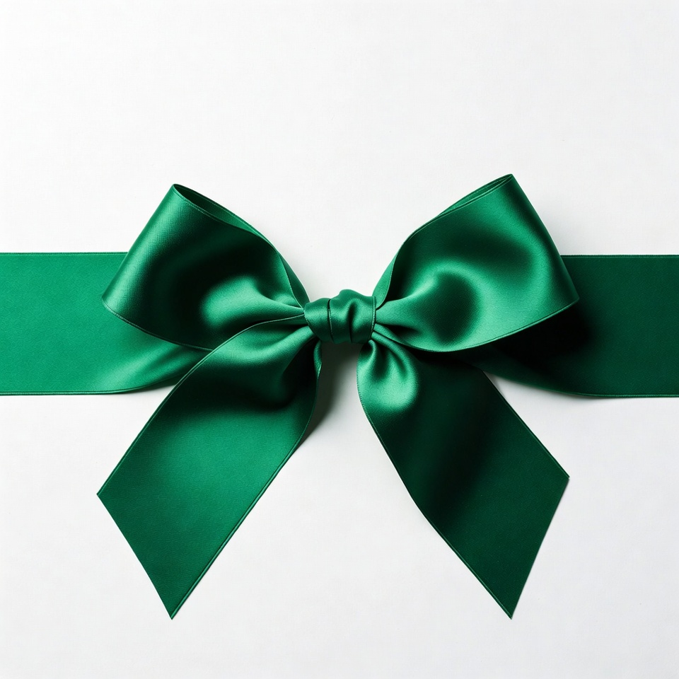 Christmas bow, bow tie ribbon, elegant bow, emerald ribbon, festive ribbon, gift bow, glossy bow, green gift ribbon, green satin, holiday bow, isolated bow, large bow, present ribbon, ribbon bow, satin bow, satin ribbon, shiny ribbon, white background, wrapping bow, green bow