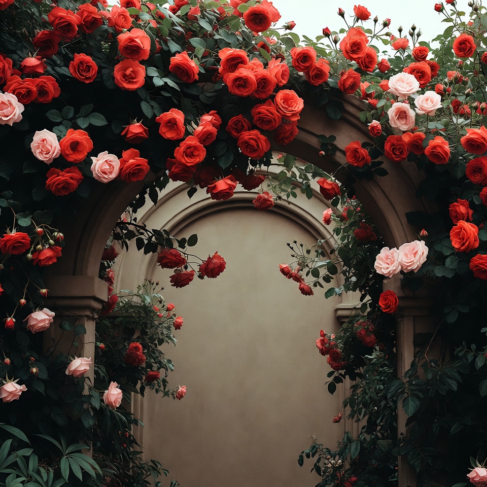 Red Roses Climbing Stone Arch