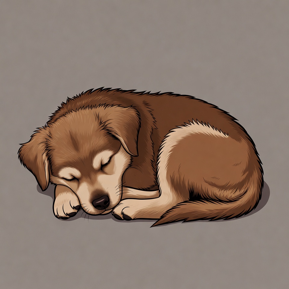 adorable puppy, animal illustration, brown husky, canine, closed eyes, curled up, cute dog, dog illustration, fluffy puppy, isolated background, paws, pet illustration, puppy sleeping, sleeping puppy, tail, white markings, young dog, husky puppy