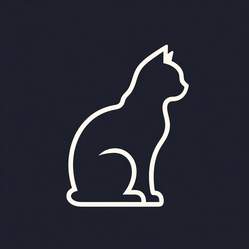 animal, black background, cat silhouette, feline, illustration, isolated, kitty, line art, minimalist, outline, pet, profile view, silhouette, sitting cat, vector, white cat, cat
