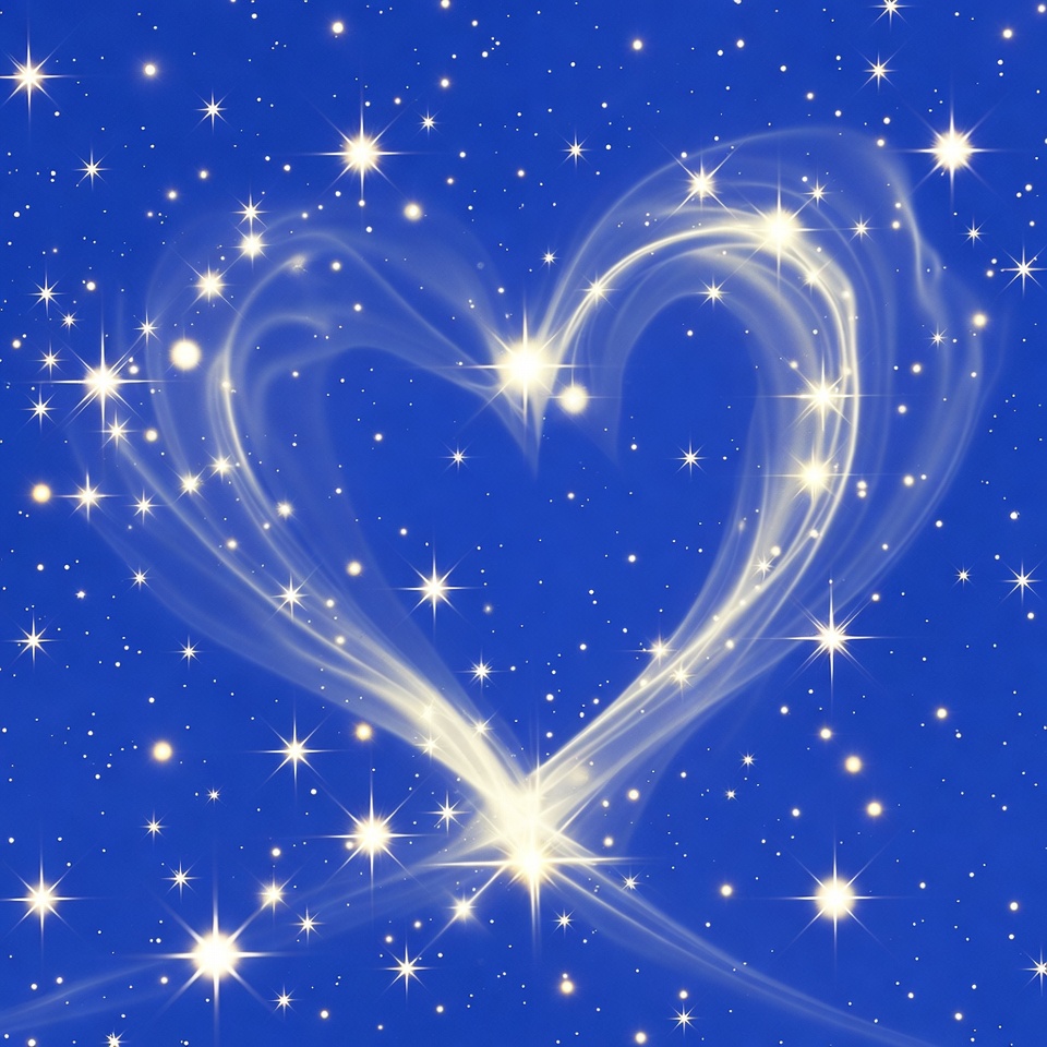 Glowing Heart in Starry Blue Sky