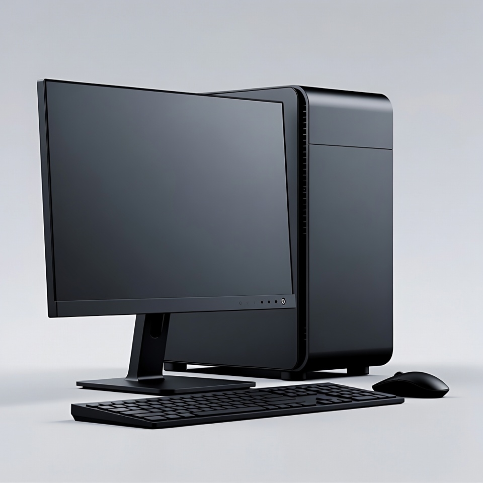 3D render, PC build, PC tower, black computer, computer desk setup, computer monitor, curved monitor, desktop computer, electronics, gaming setup, hardware, isolated background, keyboard, mouse, technology, gaming PC