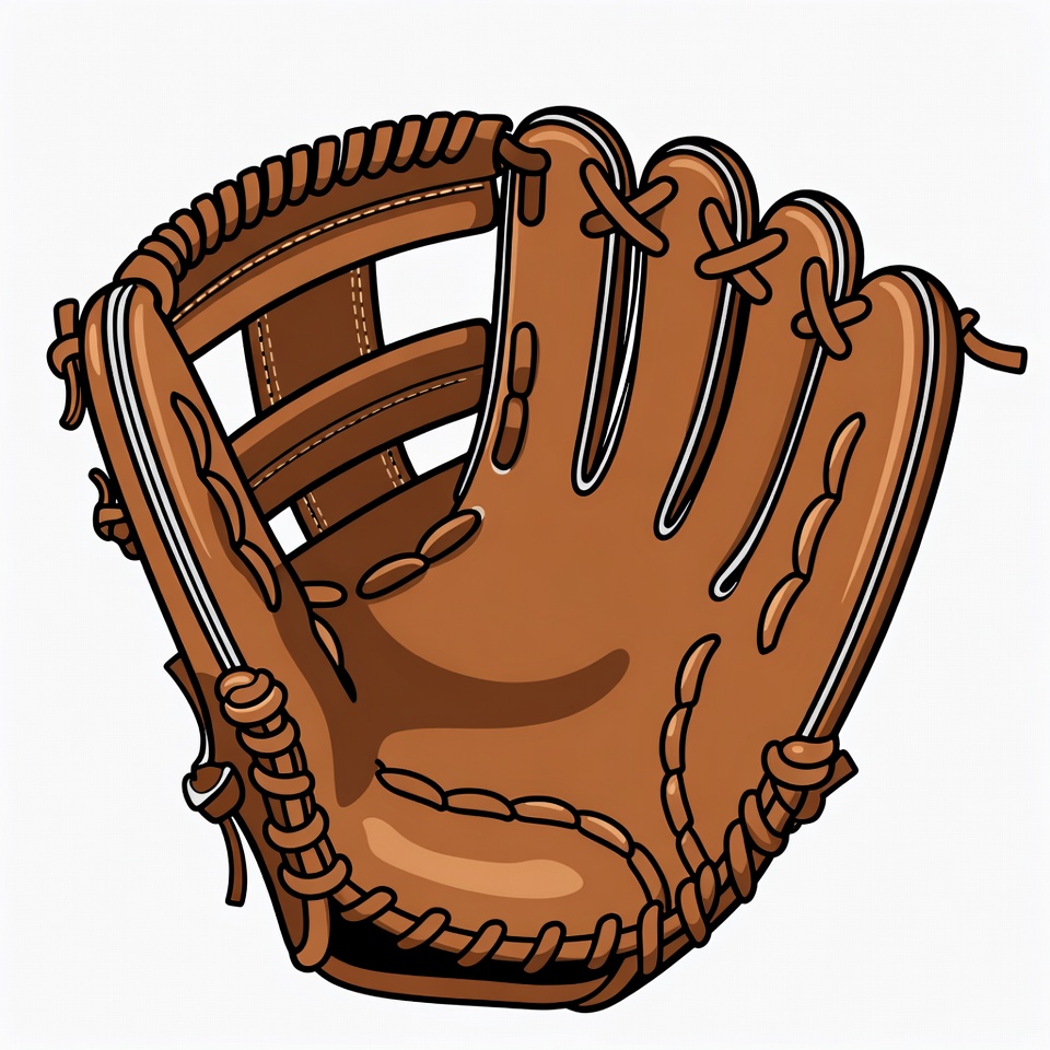 baseball, baseball gear, baseball mitt, brown glove, catchers mitt, clipart, glove, illustration, isolated background, leather glove, mitt, sports, sports equipment, vector, baseball glove
