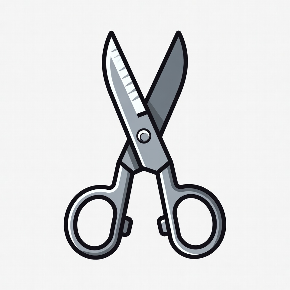 blades, clipart, craft tool, cutting tool, graphic, handles, illustration, isolated background, line art, metal scissors, open scissors, serrated edges, silver scissors, tailoring, vector, scissors