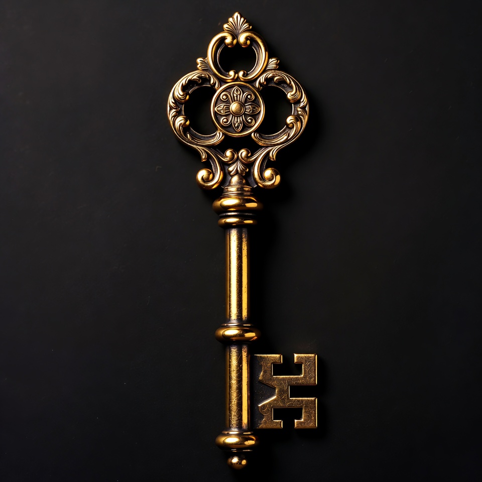 antique key, black background, brass key, decorative key, elegant key, filigree key, floral design, intricate key, isolated key, key closeup, luxury key, metal key, ornate key, skeleton key, vintage key, gold key