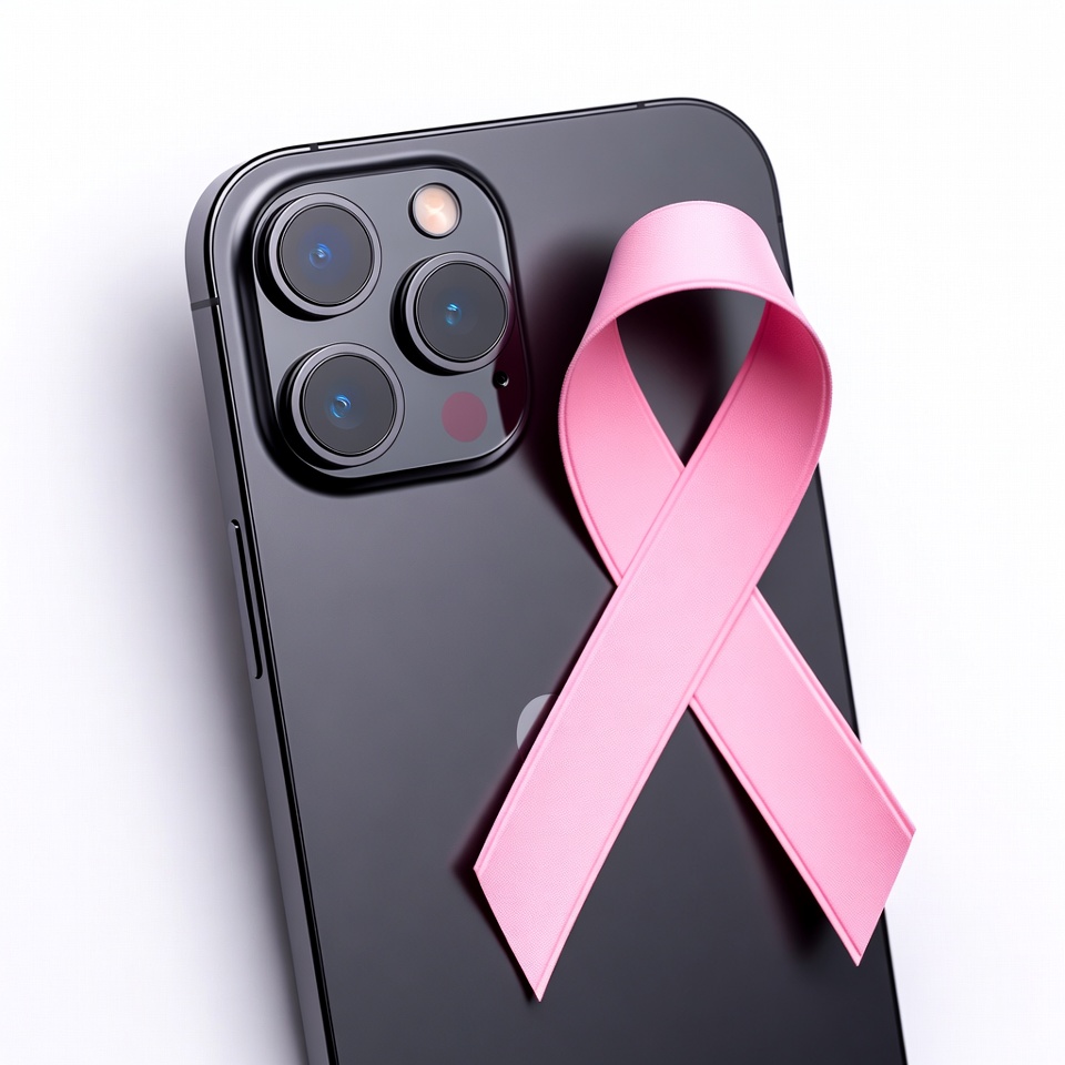 awareness symbol, black phone, breast cancer, camera lenses, cancer awareness, iPhone 12 Pro, iPhone camera, isolated background, mobile phone, pink ribbon, ribbon, smartphone, white background, iPhone