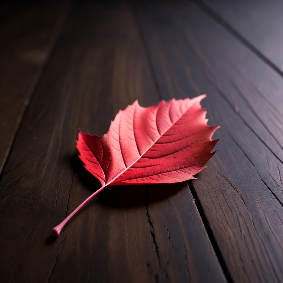 Red Maple Leaf on Dark Wood
