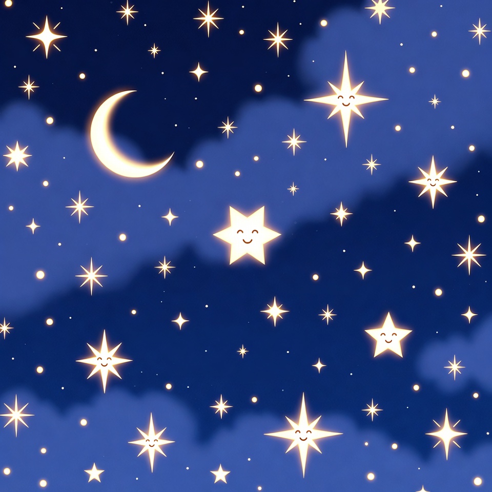 animated stars, blue background, cartoon sky, celestial, clipart, clouds, crescent moon, cute stars, digital illustration, fantasy stars, fluffy clouds, glowing stars, happy faces, illustration, kawaii stars, moon, moon glow, night illustration, sky art, smiling stars, space background, star faces, starry night, starry sky, stars, whimsical sky, white stars, night sky