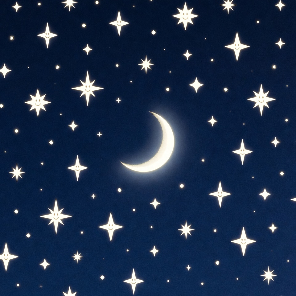 Crescent Moon and Stars Night Sky