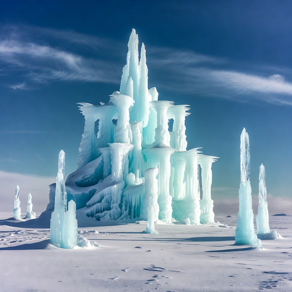 Ice Castle in Snowy Landscape