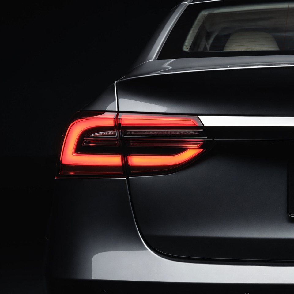 Tesla Model, auto show, automotive, black background, brake lights, car design, car rear, chrome trim, dark studio, electric car, glowing lights, gray car, headlights off, high-tech car, license plate, luxury vehicle, modern car, rear view, red lights, sedan, sleek design, tail lamps, taillights, vehicle photography, Tesla
