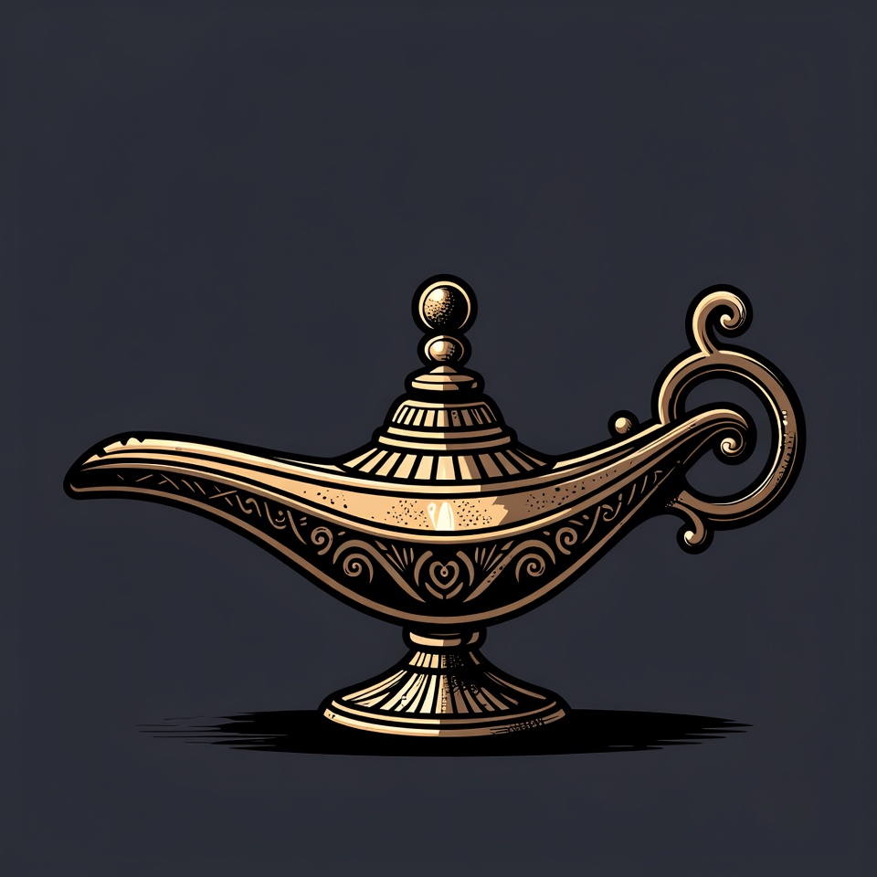 Golden Genie Lamp Illustration