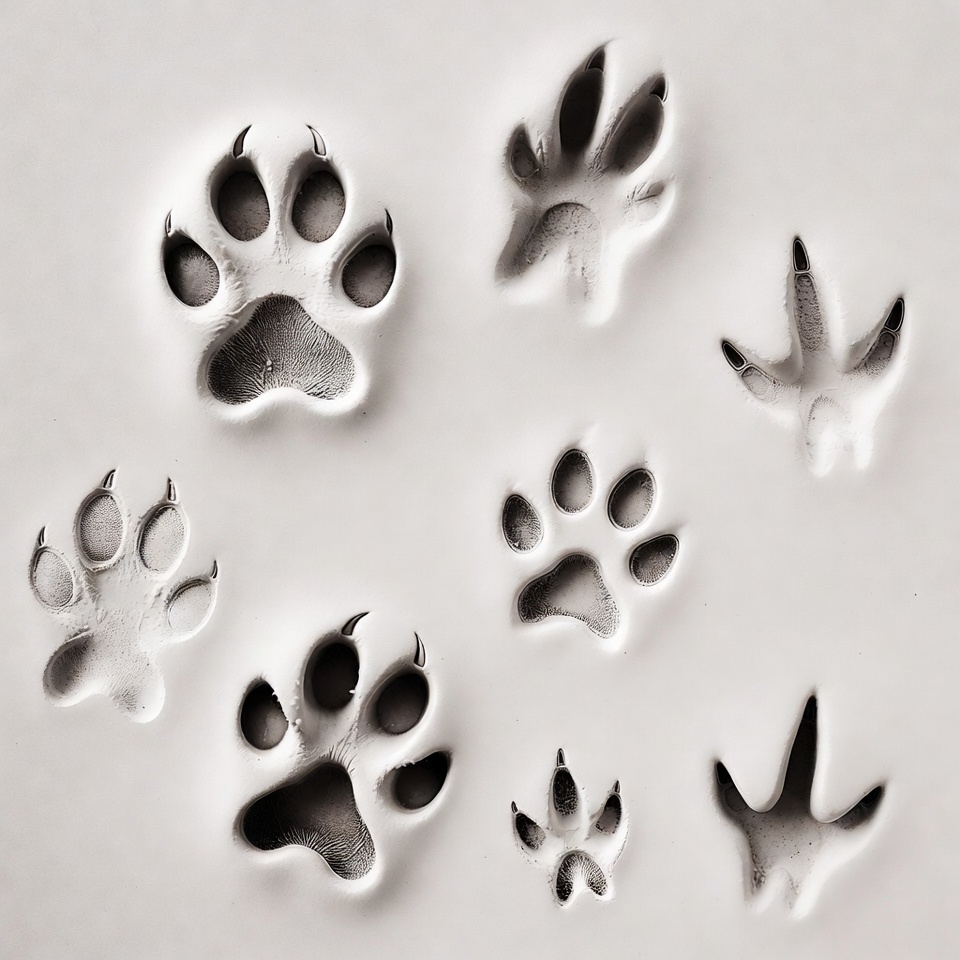 Animal Paw Prints on White Surface