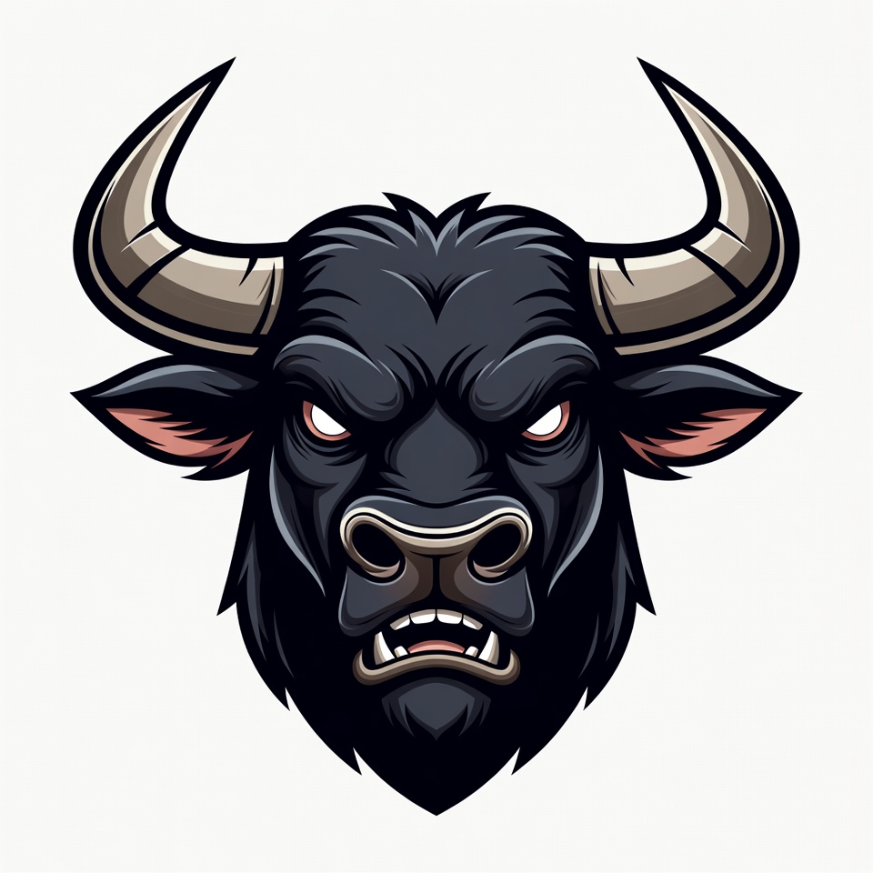 Angry Black Bull Head Illustration