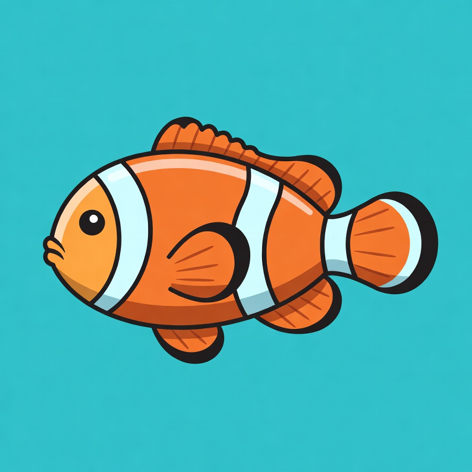 Cartoon Clownfish on Blue Background
