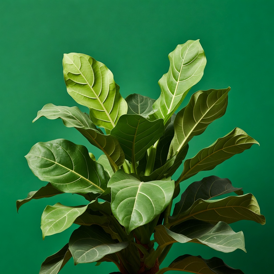 Ficus Lyrata Plant on Green Background