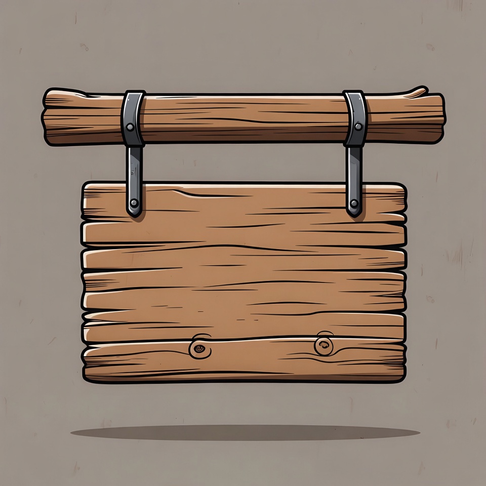 blank placard, blank sign, brown wood, cartoon illustration, clipart, double sided sign, empty sign, hanging sign, isolated background, metal hinges, ropes, rustic wood, shop sign, signboard, tavern sign, vector art, wood grain, wood plank, wooden sign