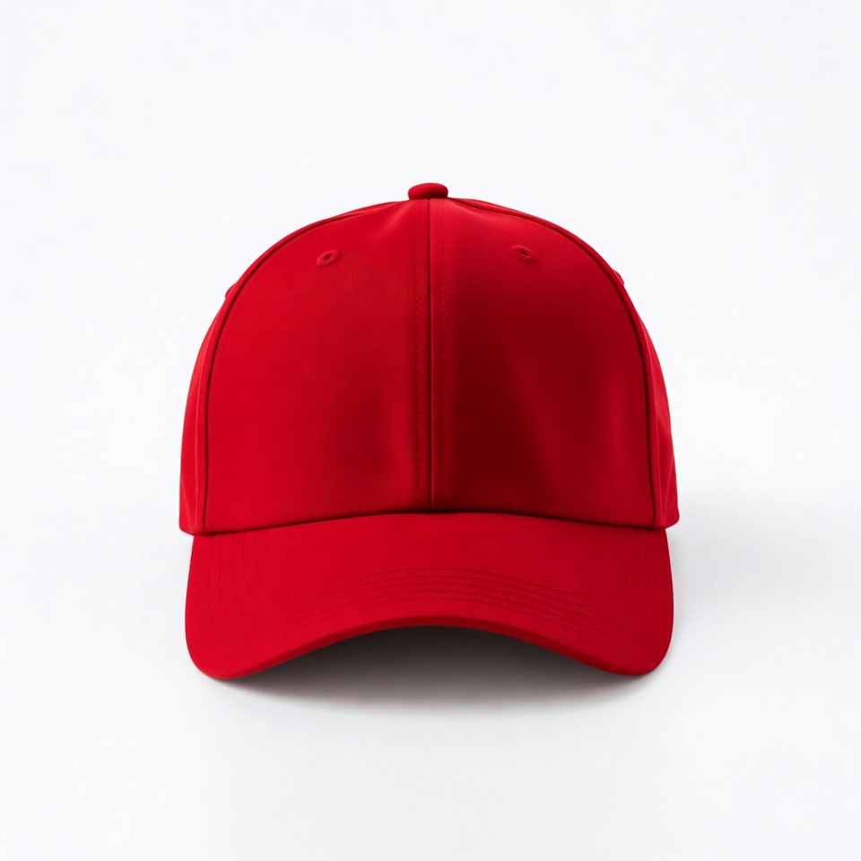 adjustable strap, apparel, baseball cap, cap, curved brim, fashion accessory, hat, headwear, isolated background, mens hat, red hat, trucker hat, unisex cap, white background, red cap