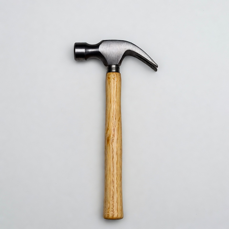 DIY tool, carpentry, claw hammer, construction tool, curved claw, hand tool, isolated, metal head, nail puller, striking face, tool, white background, wooden handle, hammer