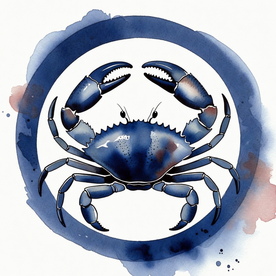 Blue Crab in Watercolor Circle