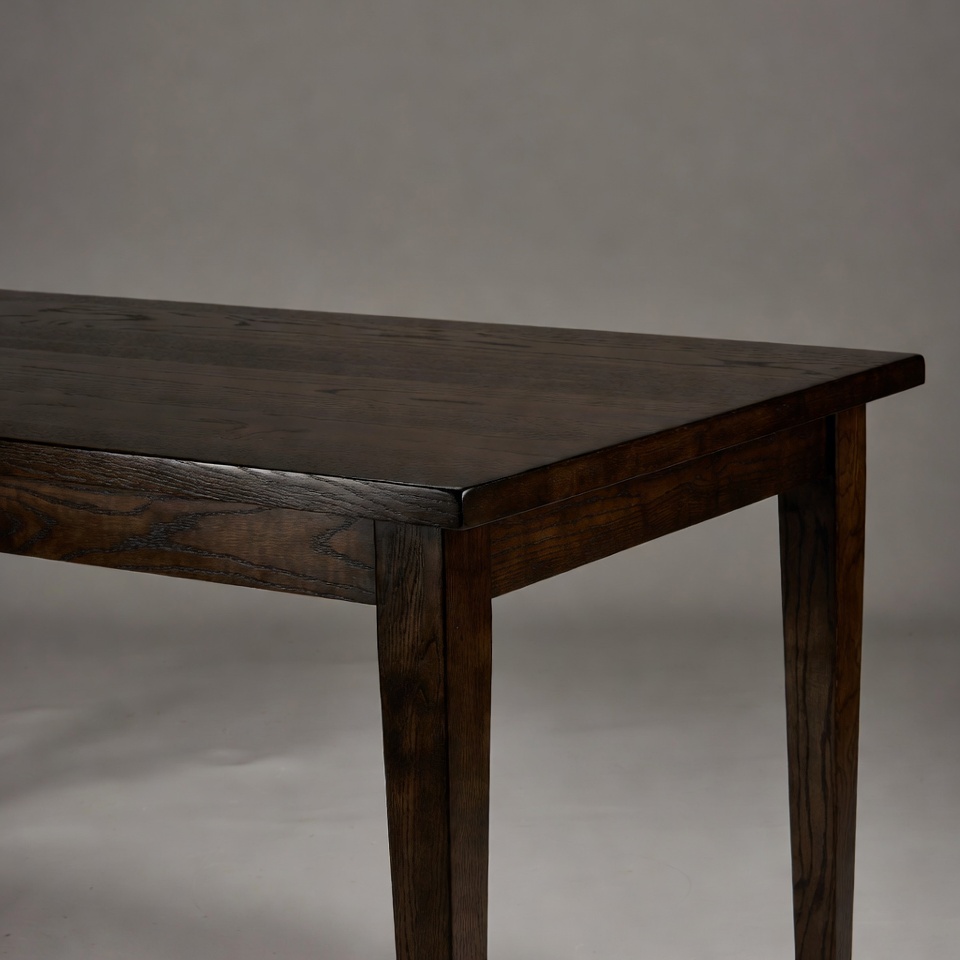 brown table, dining table, furniture, hardwood table, interior decor, isolated background, kitchen table, oak wood, rectangular table, rustic table, solid wood, table legs, table top, wooden furniture, wooden table